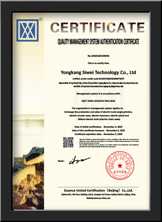 Yongkang Siwei Technology Co., Ltd. es un fabricante de herramientas profesional que integra investigación y desarrollo, producción y ventas. Siguiendo el concepto de "Enfoque en el profesionalismo, la calidad primero", la empresa utiliza procesos avanzados y materiales de alta calidad para garantizar que cada producto pueda soportar duras condiciones de trabajo. Nuestros productos presentan diseños innovadores que satisfacen las necesidades de la ingeniería moderna y se venden en todas partes, tanto en el país como en el extranjero. Nos hemos convertido en un socio confiable para muchos proyectos de ingeniería profesional.